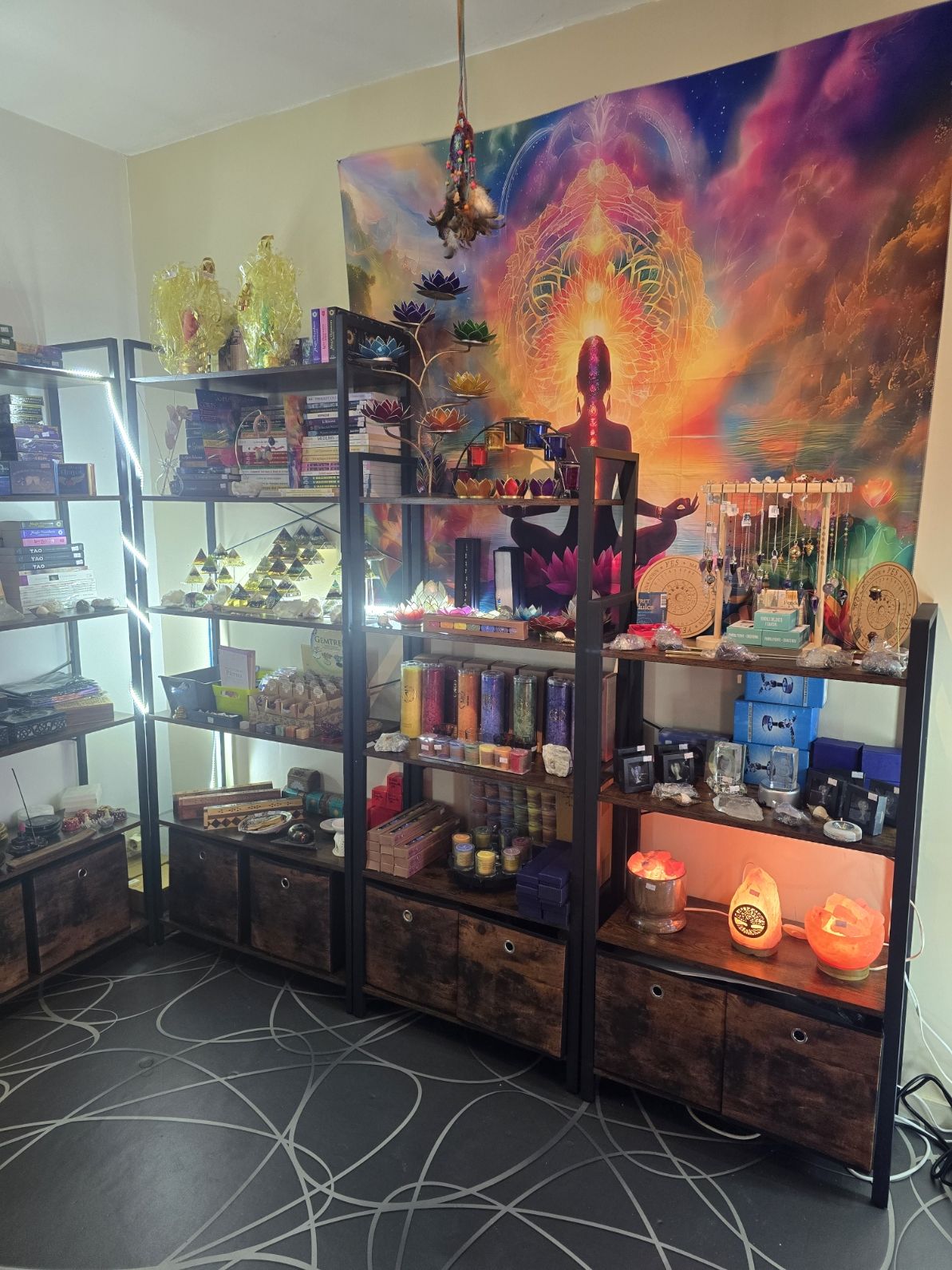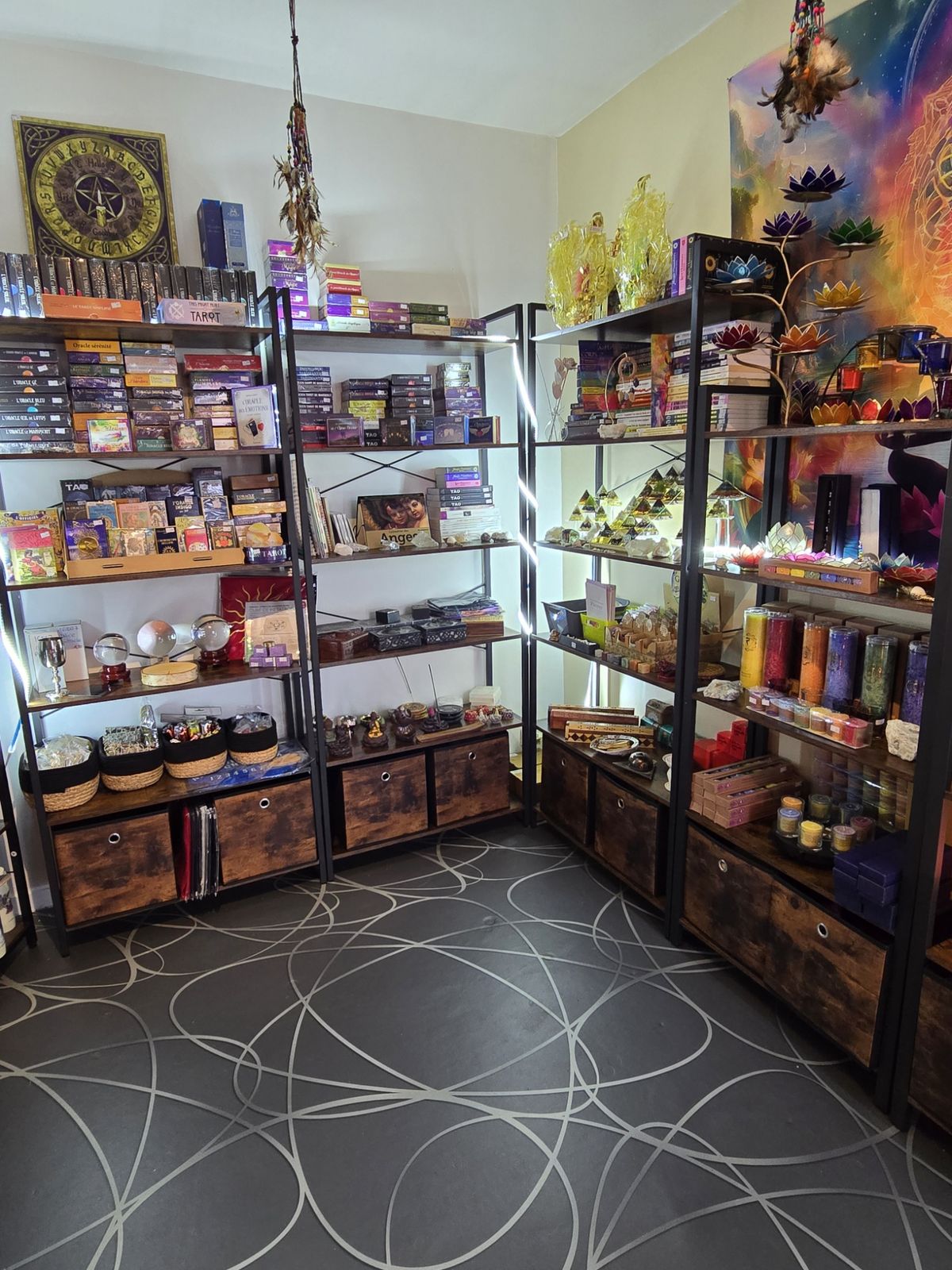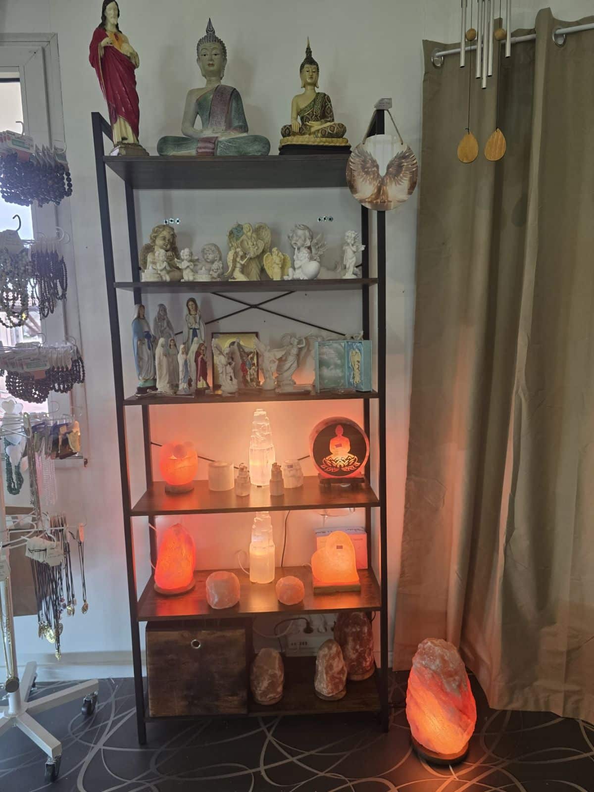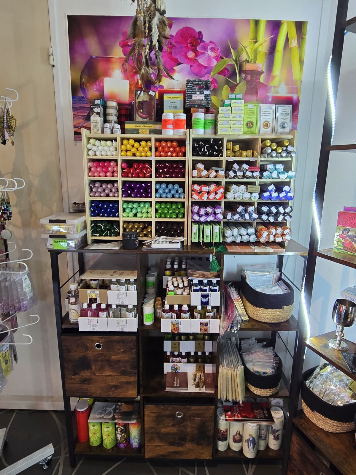 Une grande variété de produits spirituels, des cristaux, des encens, des bougies, des bougeoirs, des jeux de cartomancie, des Oracle et des Tarots, des livres et cd sur la spiritualité, des statues et bien plus encore !