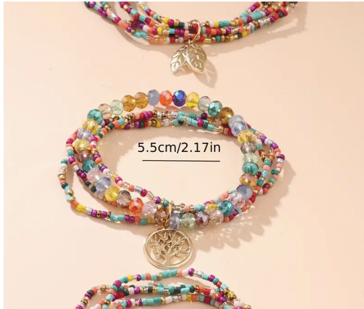 3 Bracelets multi couleurs en perles avec breloques arbre de vie et feuille