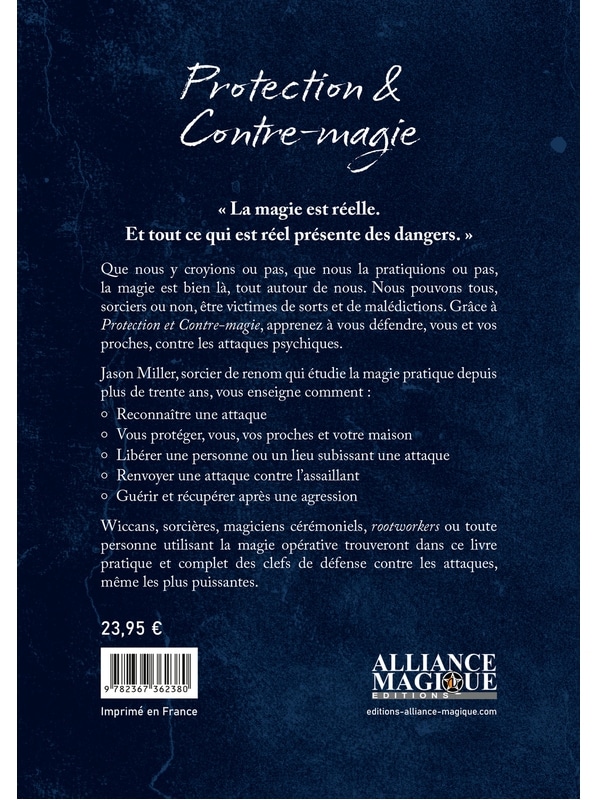 Grâce à Protection et Contre-magie, apprenez à vous défendre, vous et vos proches, contre les attaques psychiques. Jason Miller, sorcier de renom qui étudie la magie pratique depuis plus de trente ans, vous enseigne comment : reconnaître une attaque , vous protéger, vous, vos proches et votre maison , libérer une personne ou un lieu subissant une attaque , renvoyer une attaque contre l’assaillant , guérir et récupérer après une agression. Wiccans, sorcières, magiciens cérémoniels, rootworkers ou toute personne utilisant la magie opérative trouveront dans ce livre pratique et complet des clefs de défense contre les attaques, même les plus puissantes
