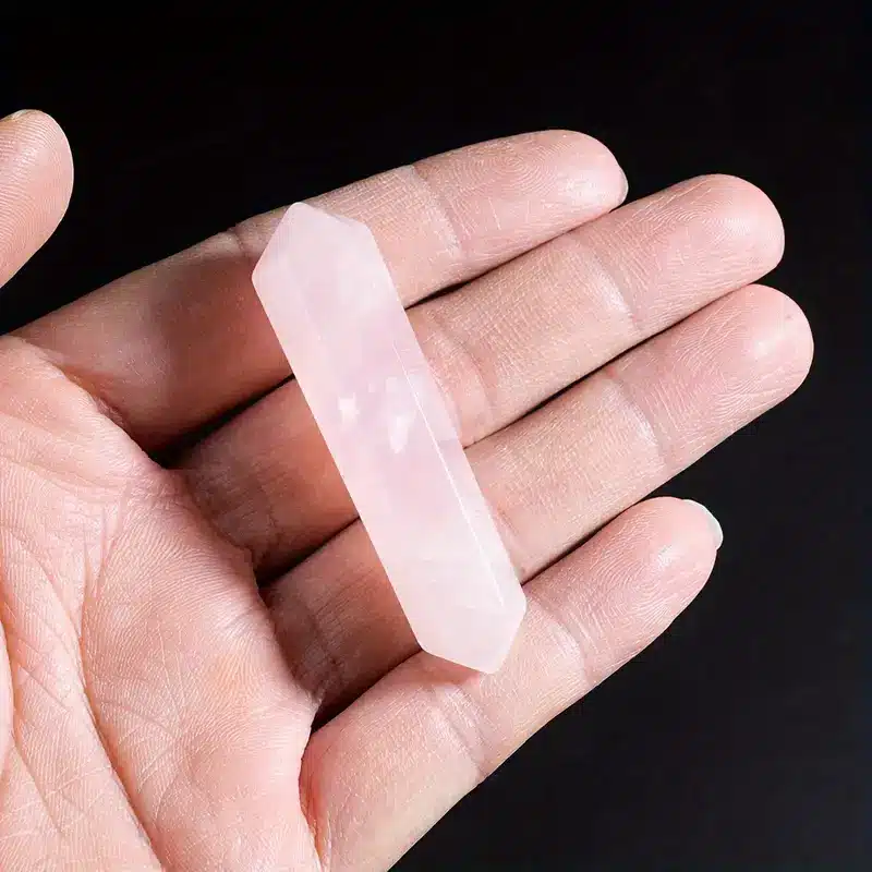 Cette baguette en quartz rose est idéale si vous cherchez une baguette faite d’une pierre douce pour travailler sur les émotions, l’amour, le pardon et la séparation.