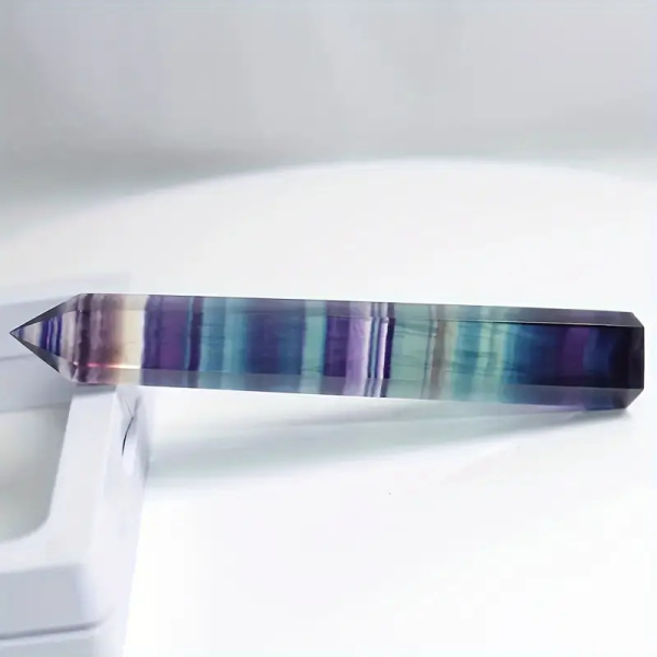 La pointe de Fluorite est la forme idéale pour percevoir ses motifs fascinants, avec des bandes et des stries colorées qui varient du vert au violet en passant par le bleu. Sa translucidité permet à la lumière de se jouer à travers la pointe, créant un effet visuel spectaculaire.