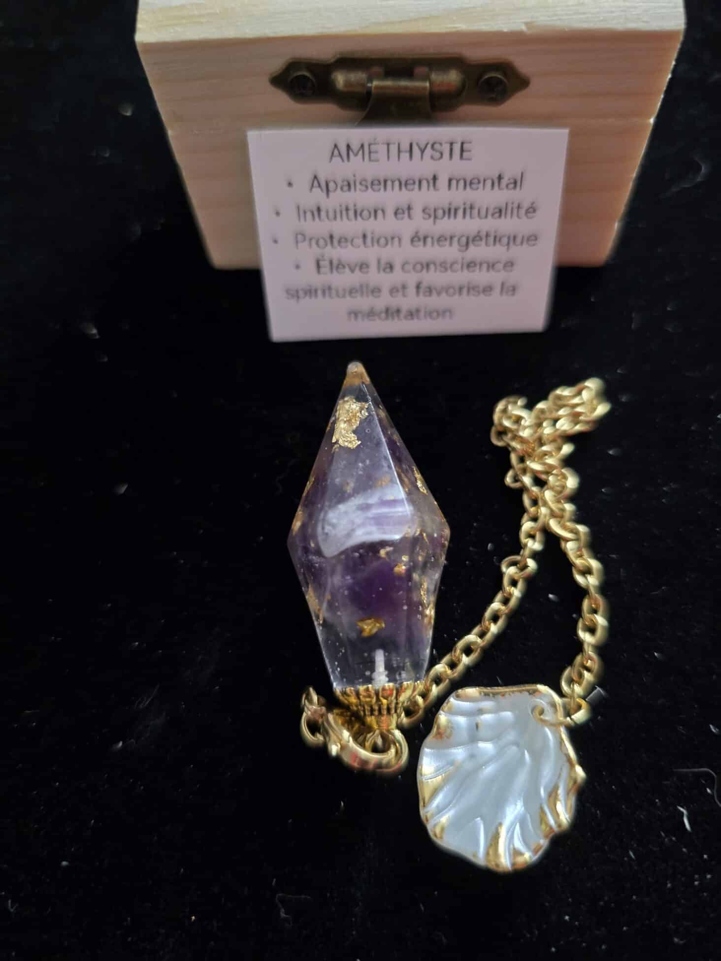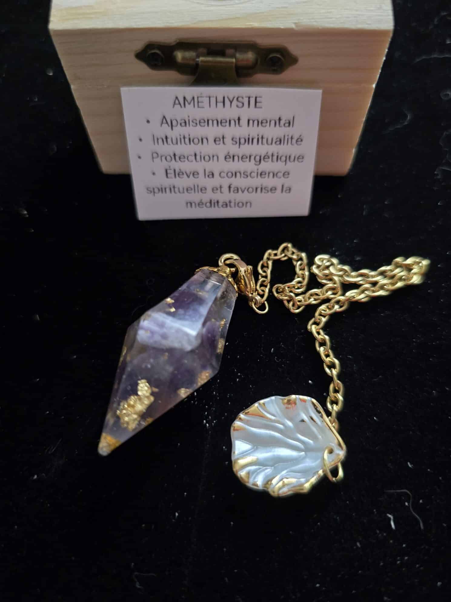 - Matériau : Améthyste authentique aux nuances violettes envoûtantes, symbole de sérénité et de spiritualité.