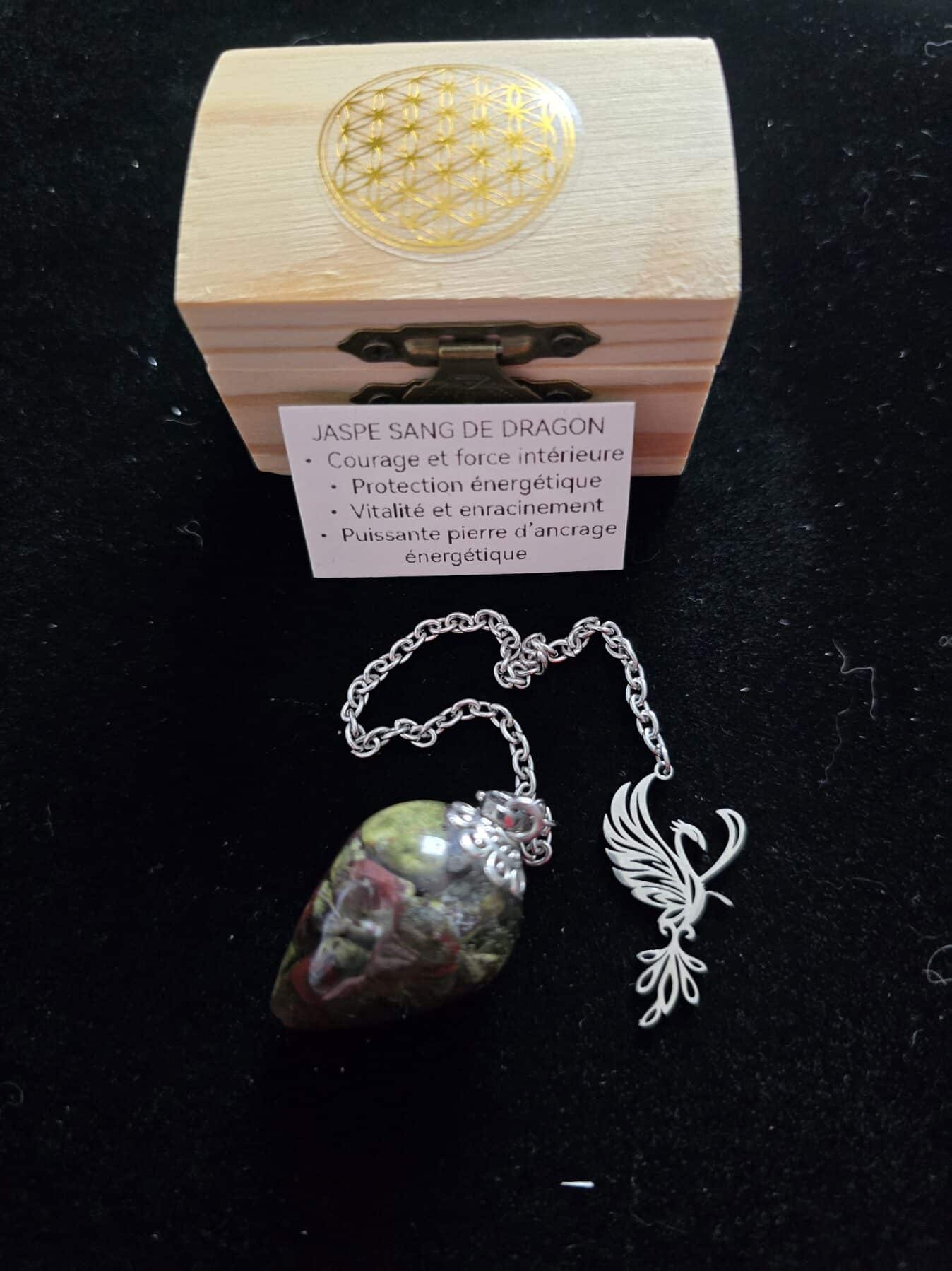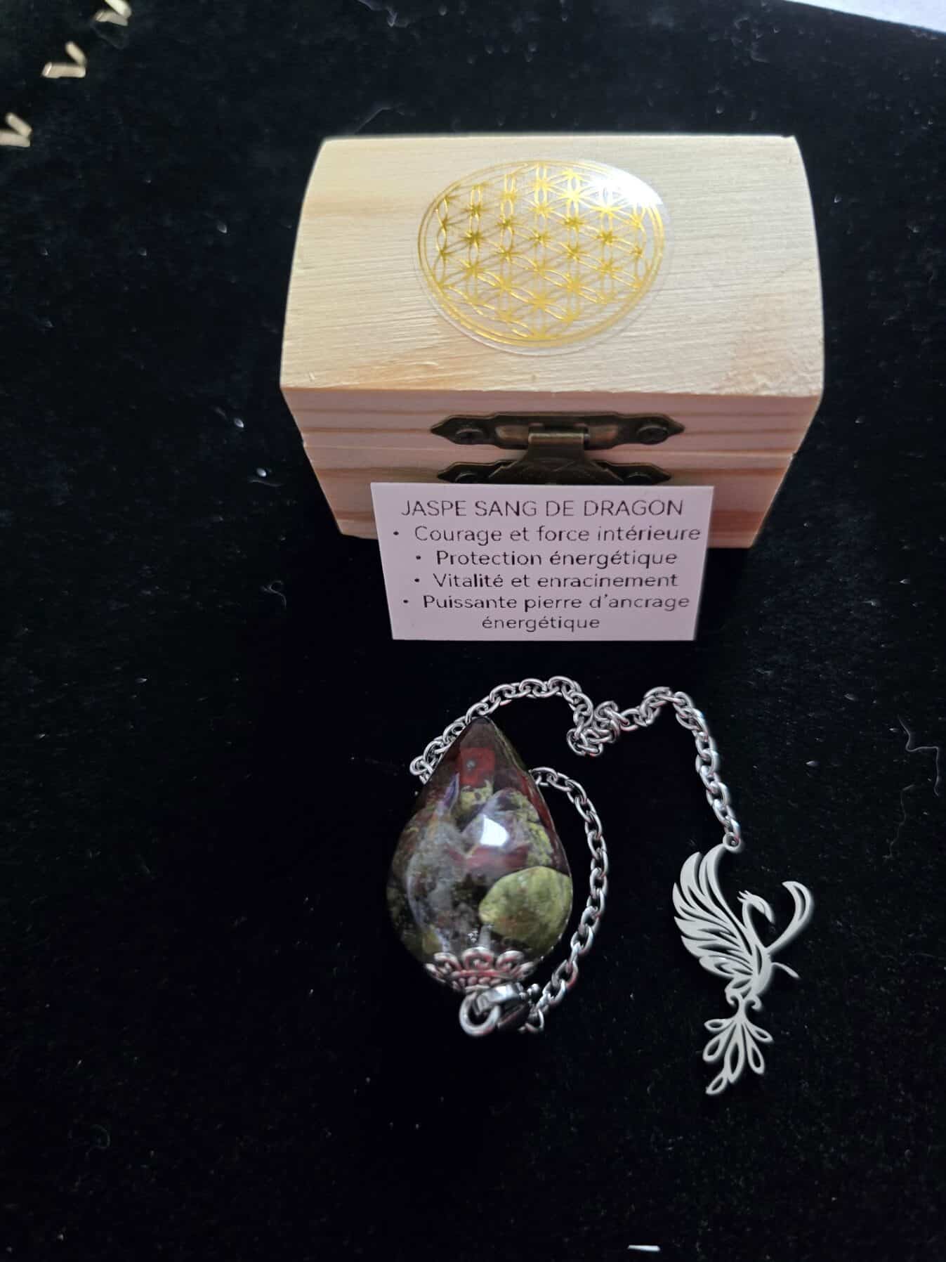 - Pierre exceptionnelle : Jaspe Sang de dragon authentique, avec ses motifs envoûtants qui évoquent la magie et la force légendaire.