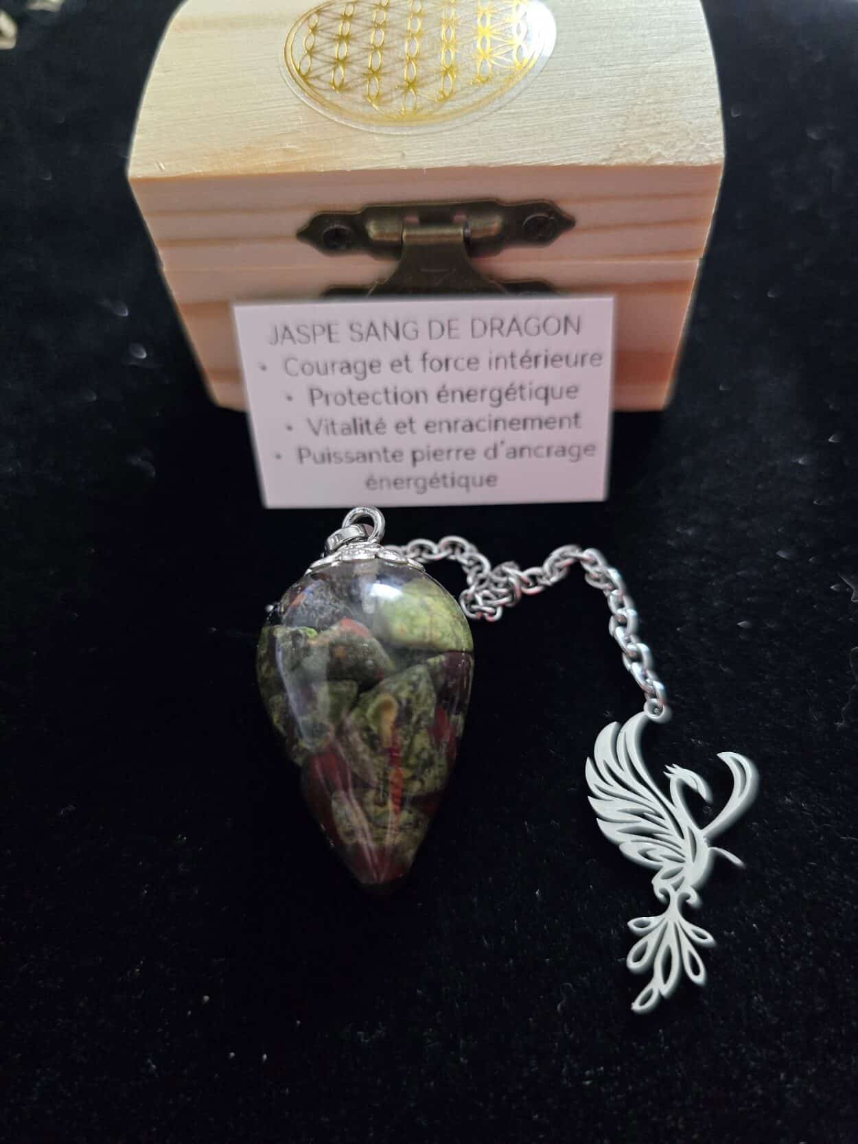 - Le jaspe Sang de dragon est réputé pour ses propriétés revitalisantes et protectrices, parfaites pour stimuler le courage, l’énergie intérieure et la force mentale.